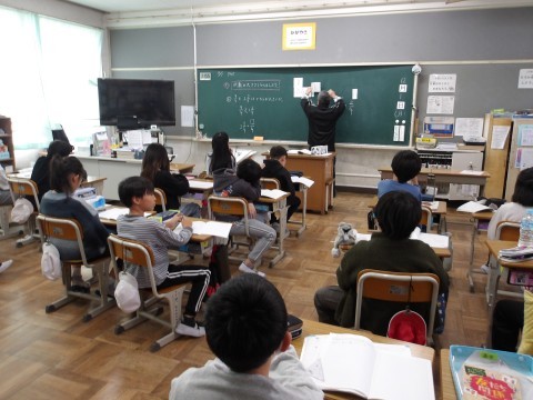 分数の大きさを比べる学習をしました。仮分数と帯分数を比べる方法は難しいところですが,図で表すことで理解を深めようと頑張っていました。