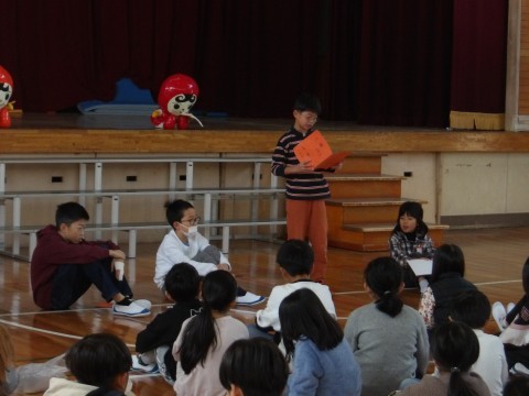 人権集会を行いました。それぞれの学年の代表が,意見を発表してくれました。仲間を大切にすること,差別を絶対にしないことなどを,みんなで確認しました。友達の発表を一生懸命聞いている姿が印象的でした。