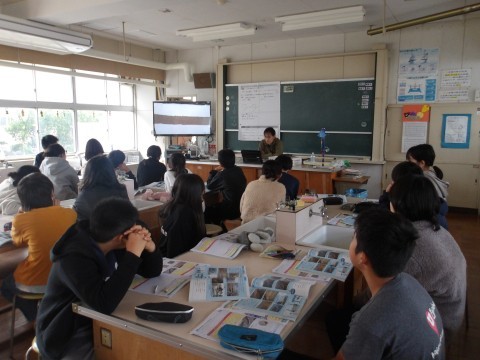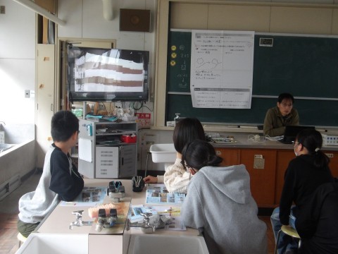 地震の際に地層がどうずれるのかについて,動画で確認していました。集中して授業に参加していました。