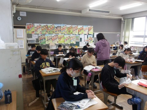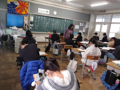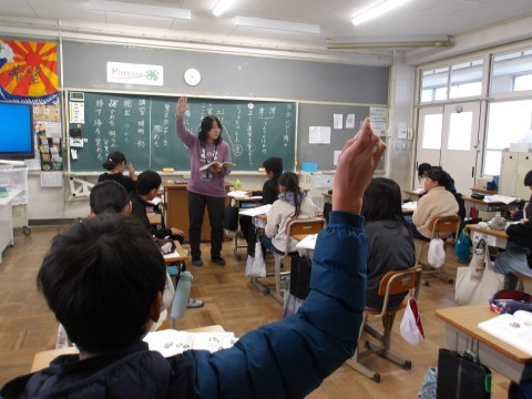 いろいろな読み方のある漢字について学習しました。「孝行」の読み方を知った後に先生が,「みんな親孝行してますか?」と聞くと,「・・・してないです。」「親不孝してます。」との返事が。「では今日から親孝行してください!」という楽しいやりとりがありました。