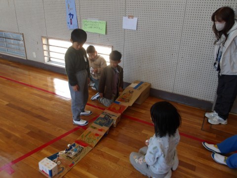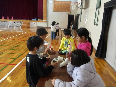 2年生が保育園児を招待して行う”わくわく広場”本番の前に,1年生にお客さんになってもらってリハーサルを行いました。