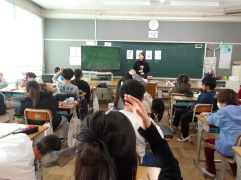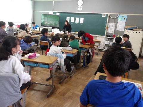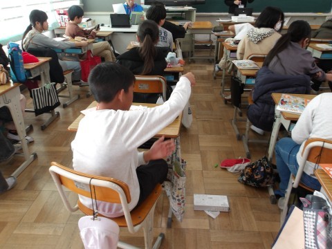in,on,under,byなどの前置詞について学習しました。写真は,先生に”pencil on the head!”と言われて鉛筆を頭にのせた様子などです。