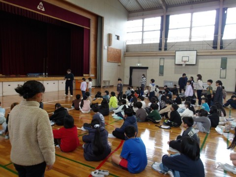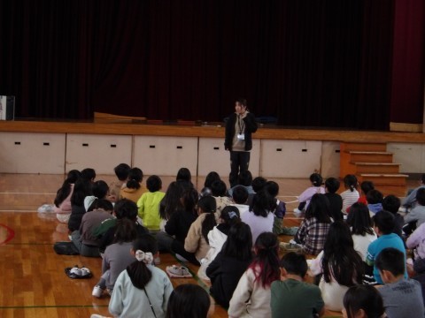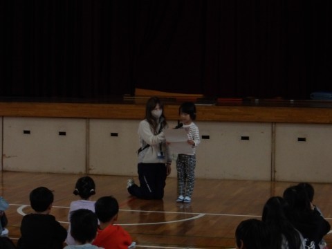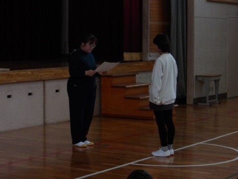 まず,生徒指導の先生から。最近廊下や教室を走り回っている人が多く,それが大きなけがにつながっているというお話がありました。次に,1年生が人権作文を発表しました。最後に,作品展に取り組んだ表彰がありました。頑張ってくれている人がたくさんいて,うれしいです。