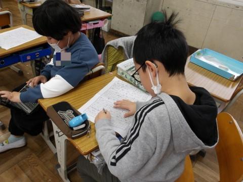 理由や事例を挙げて,自分の意見文を書く授業の続きでした。集中して,自分の意見を筋道立てて書いていました。