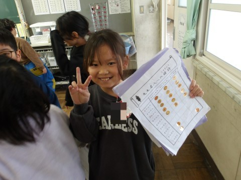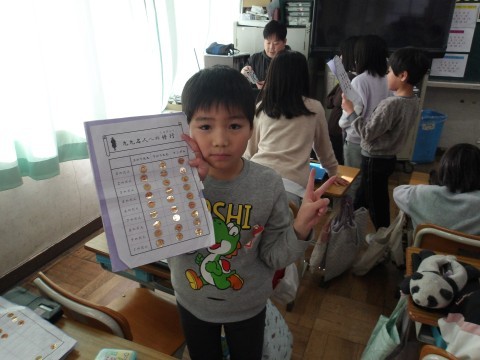 九九の暗唱にチャレンジしていました。上がり九九,下がり九九,ランダムの3種類全てに合格しようととても頑張っていました。