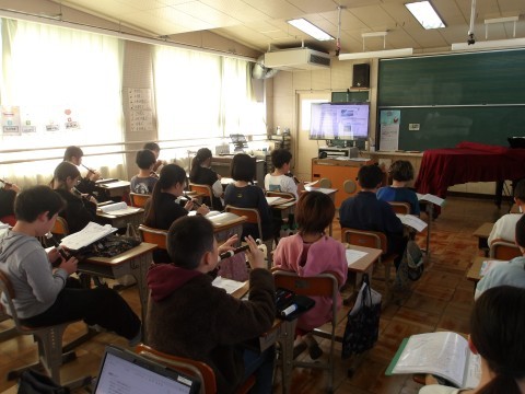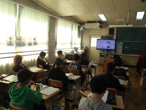 リコーダーの練習をしていました。5年生らしく,しっかりと音が出ていました。