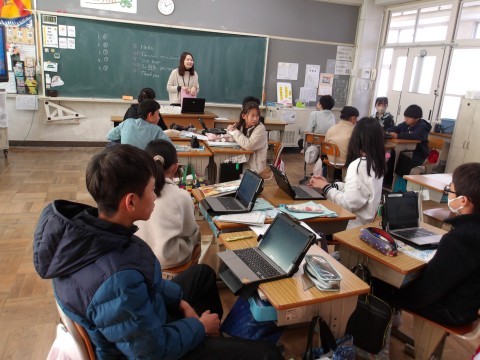 世界旅行のツアーをグループごとに発表しました。みんなの前での発表に慣れてきている児童が増えています。