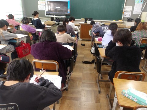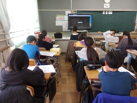これまでの復習を兼ねたリスニング問題に挑戦していました。集中して聞いていました。