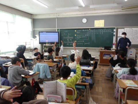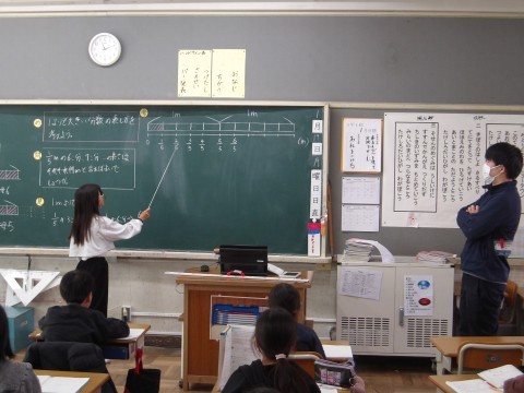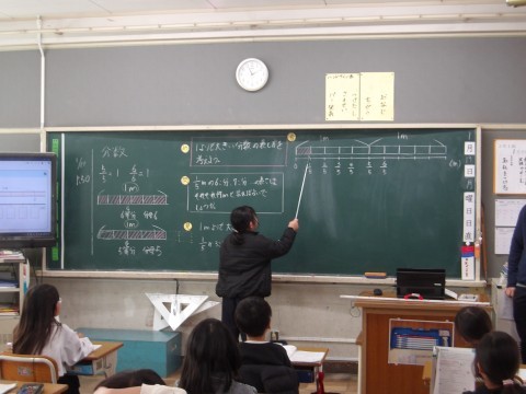 分数の学習をしました。図や数直線を何度もかいて確認していました。担任の先生が「算数といえば数直線,というくらい数直線が大切!」と子どもたちに伝えていました。