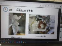 今日の献立は、ご飯、牛乳、味噌煮込みうどん、大根の塩こうじあえ、小魚の佃煮です。