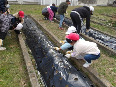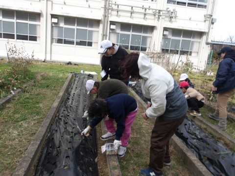 ひまわり学級ではタマネギを育てています。今日は肥料をまきました。大きく育ちますように!