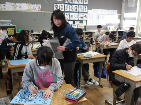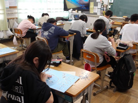 版画のデザインが完成し,彫りはじめていました。どの子も個性豊かな作品で,完成が楽しみです。