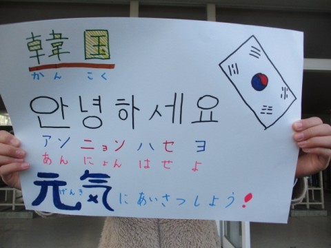 今週は児童会が昇降口に立ち、あいさつ運動を行っています。今年度は万博も開催されていたので、「色々な国のあいさつをしてみよう」と話し合いで決まりました。ドイツ語、フランス語に続いて、今日は韓国語です。明日は最終日。どんなあいさつなのか、お楽しみに!