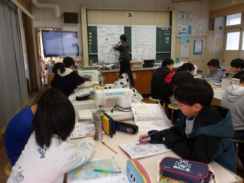 6年生に向けて復習しています。今日はミシンの各部分の名称や使い方などを,改めて確認していました。