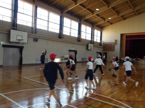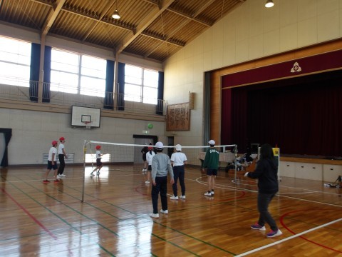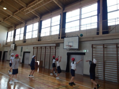 バスケットボールとバレーボールにわかれて活動していました。「ハイ!」「チャレンジチャレンジ!」など,声をかけ合っていました。