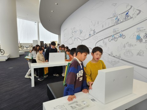 シマノ自転車博物館で、様々な自転車を見たり、おすすめの自転車を選んだりしています。