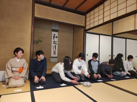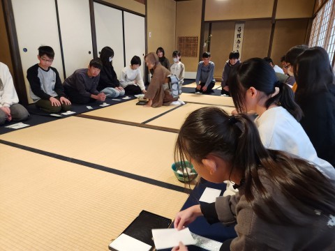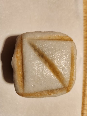 今日のお菓子は節分の豆のマスをかたどった薯蕷饅頭でした。