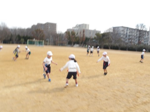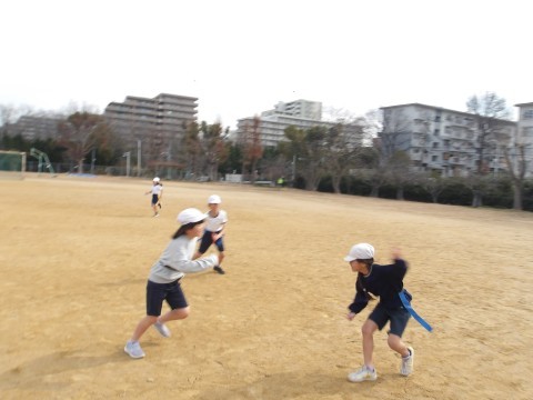 腰の横につけたタグを取り合うゲームをしました。とても白熱していました。