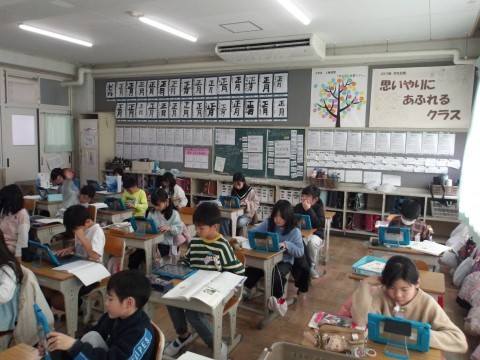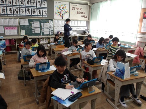 簡単な作文を考え,タブレットにローマ字入力する練習をしていました。文章力とタイピング能力の向上をめざしています。
