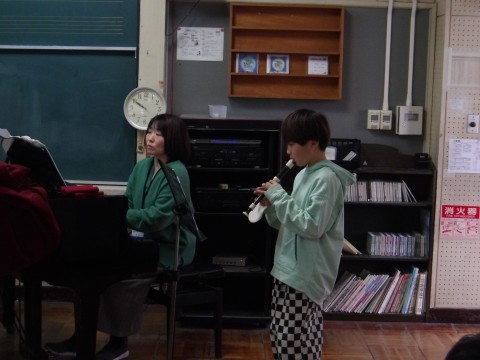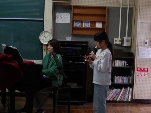 卒業式に演奏するリコーダー曲「威風堂々」のテストをしました。子どもたちは緊張しながらもきれいな音色を響かせていました。