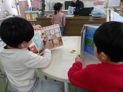 夢中になって絵本を読んでいました。