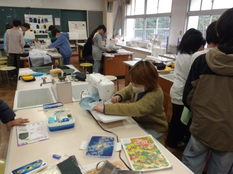 エプロンづくりをしていました。もうすぐ完成しそうです!