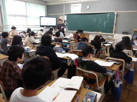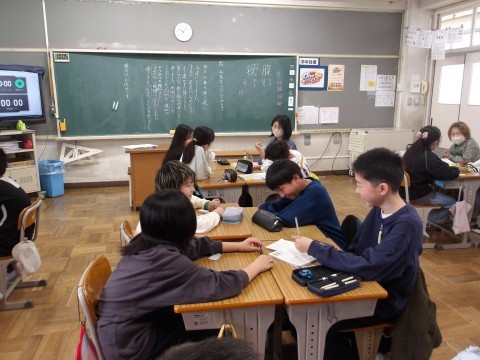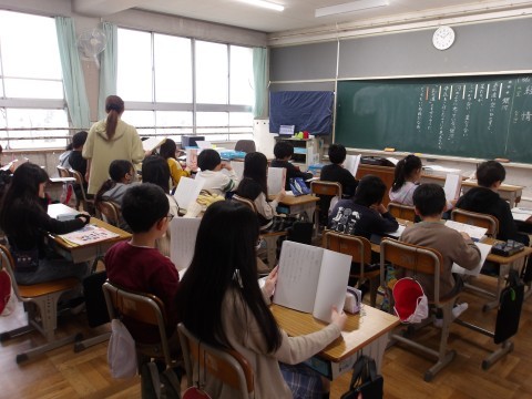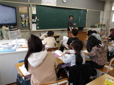 4~6年生は,どの学年も国語の授業をしていました。即興でお話を1文ずつグループで考えることを楽しんだり(6年),みんなで元気よく詩の音読をしたり(4・5年)していました。
