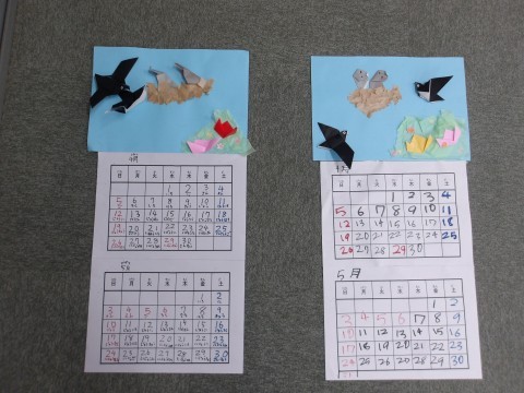 ひまわり学級の子どもたちは2か月に1回,季節に合った素敵なカレンダーを作成し,教室に届けてくれています。今回も,つばめがひなを育てている素敵な作品が届きました。