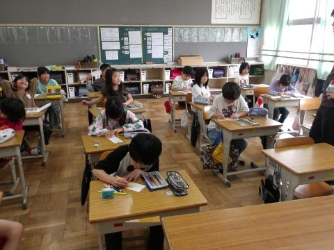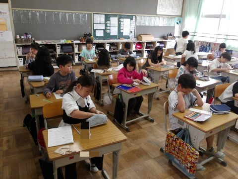 日直の札を作成していました。新しい気分で,自分の名前を丁寧に書いていました。