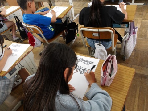 こいのぼりの絵を,うろこ1枚1枚丁寧に,風になびくように力強く描いていました。