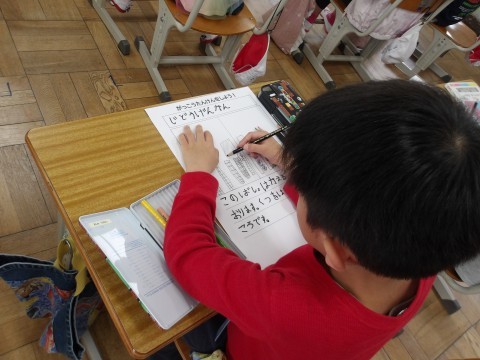 1年生との学校探検のために,おすすめの場所の説明書を書いていました。お兄さん,お姉さんらしく,張り切っていました。