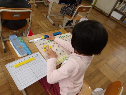 数の多さを比べる学習をしました。ブロックを使って,視覚的に理解を深めています。