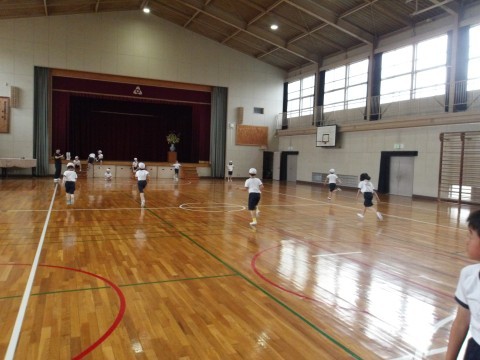 スポーツテストのシャトルランに挑戦していました。いい記録が出ますように。