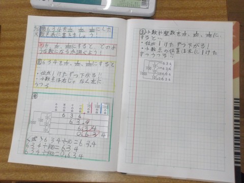 小数のしくみについての学習でした。ノートをわかりやすく,丁寧にまとめようと頑張っていました。