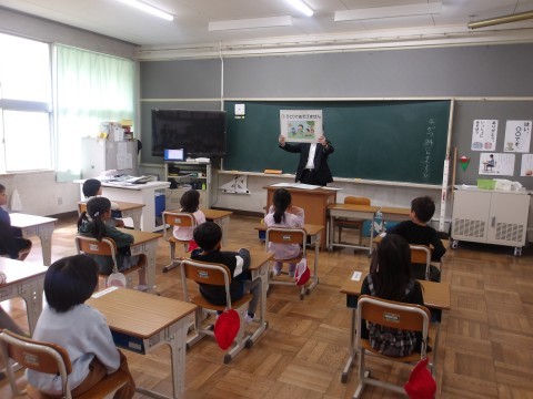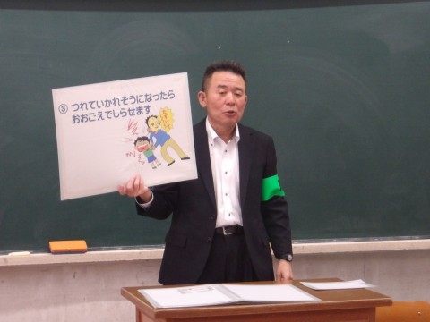 堺南警察のおまわりさんに来ていただき,誘拐されないように気をつけることをわかりやすく教わりました。ありがとうございました。