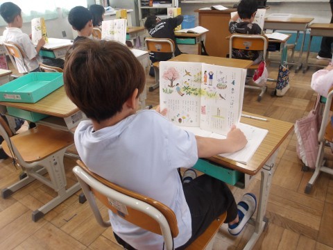 「春がいっぱい」という詩を,みんなで元気よく読みました。