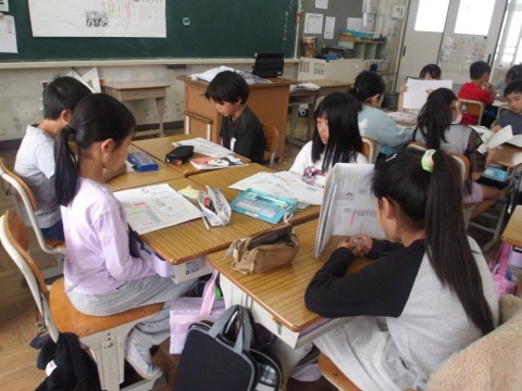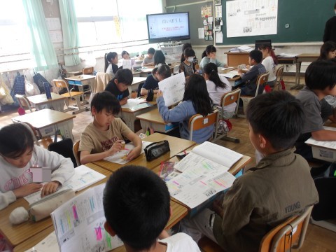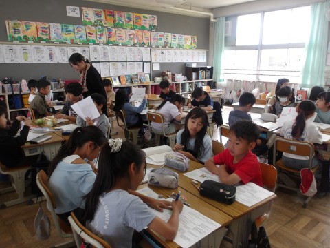 物語「白いぼうし」を読み深めています。どの子のプリントにも自分の意見の書き込みがたくさんしてありました。