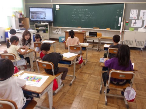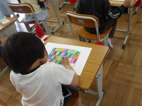 先週の学校たんけんで,気に入った場所の絵をかきました。学校の中でお気に入りの場所をたくさん見つけてくださいね。