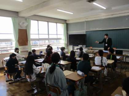 6年生の教室でのようすです。クラスのルールなど、担任の先生からお話がありました。