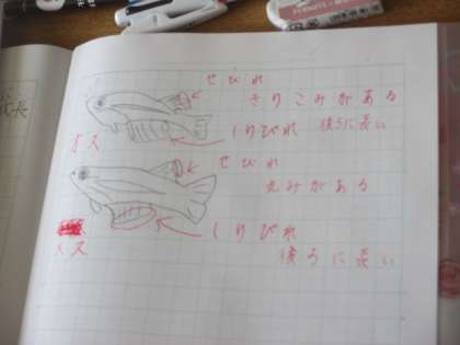 メダカのオスとメスを見分けよう。