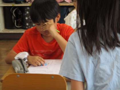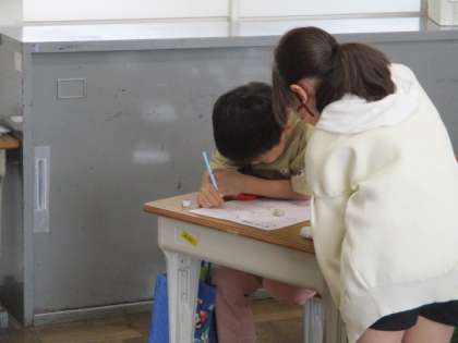 わり算の学習にも慣れてきたので、今日は練習問題に取り組みました。1人で考えたり、ペアや近くの人と教え合ったりしながら頑張りました。