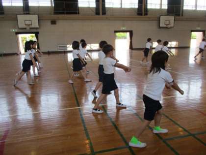 体育大会のダンスの練習では、小グループになり新しい技も覚えました。みんなの顔を見ながらダンスをすると、ウキウキしてきました。