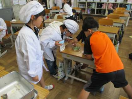 教室の中にいる幼虫のことがとっても気になる3年生です。自分たちが給食を食べた後、幼虫もご飯を食べているかどうか見守っていました。休憩時間には、学習園に行き新しい仲間の発見も忘れません。