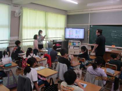 火曜日の外国語の授業の様子です。NSの先生に自己紹介をしています。みんな堂々としていました。