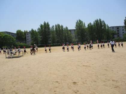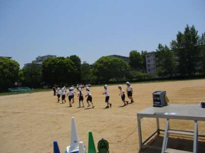 運動場で体育大会の団体演技の練習をしました。暑くなってきている中での練習です。休憩をとりながら進めています。たっぷり水分補給できるよう、お茶の準備を引き続きお願いいたします。