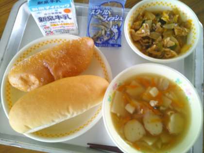「ミニパン、あげパン、牛乳、ワンタン、豚キムチ、 ミニフィッシュ」