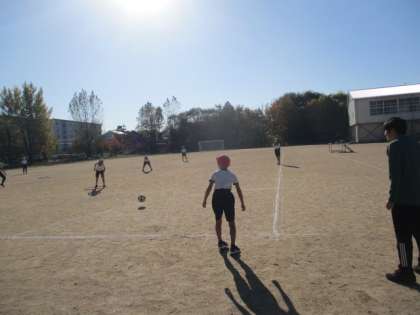 外あそびクラブの様子です。運動場でキックベースをしていました。