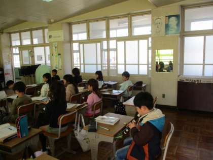 リコーダーで「ファ」「ミ」の音を出していました。お互いに音を聴きあいながら学習を進めています。