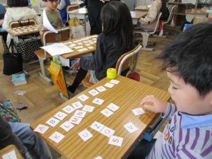 アルファベットカードを使って、ゲームをしながら学習したり、自分で口ずさみながら覚えたりしました。先生も、子どもたちと一緒にABCカード並べを本気でやりました。グッと集中して何かをするって、気分がいいですね。