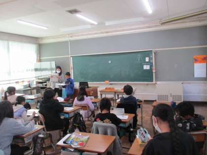 外国語の学習の様子です。自分の行きたい場所を英語で発表していました。